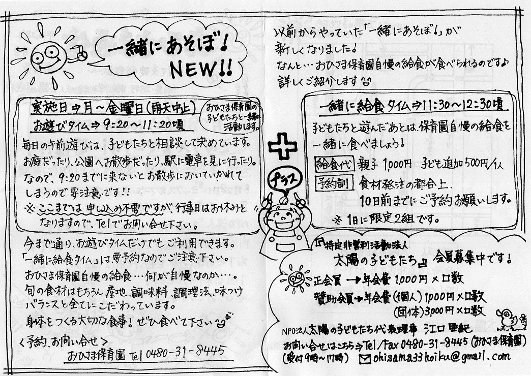 おひさま保育園の子どもたちと一緒に遊びませんか?